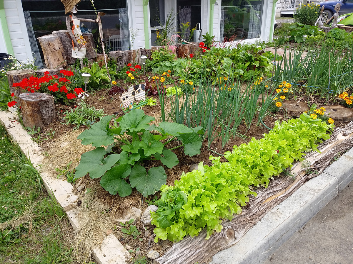 Five years ago, I decided to surprise my sister, who had converted her parking lot into a flowerbed. The soil was rock-hard, so I rebuilt the base with branches, maple shavings and grass clippings, to which I then added some good compost. Since then, this mini-vegetable garden has been a joy to cultivate. The rich soil retains water well, and plants grow abundantly, much to the delight of the occupants, who enjoy months of tasty tomatoes, lettuces, onions, cucumbers and various types of lettuce, not to mention herbs.